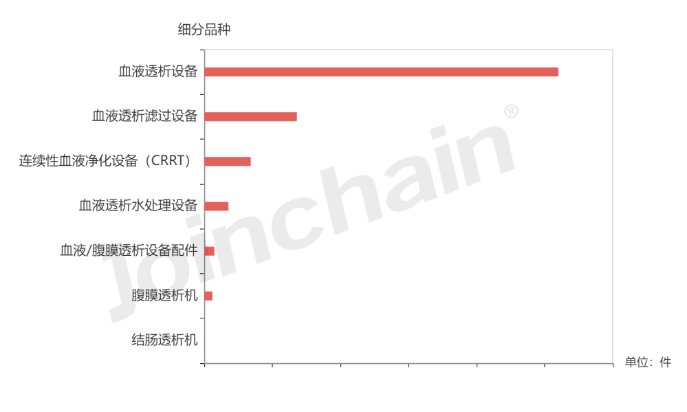 据中标结果显示,血液透析设备的中标数量最多,其次是血液透析滤过设备和连续性血液净化设备(