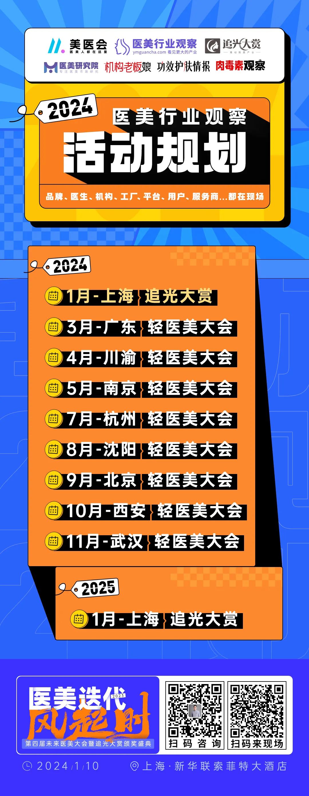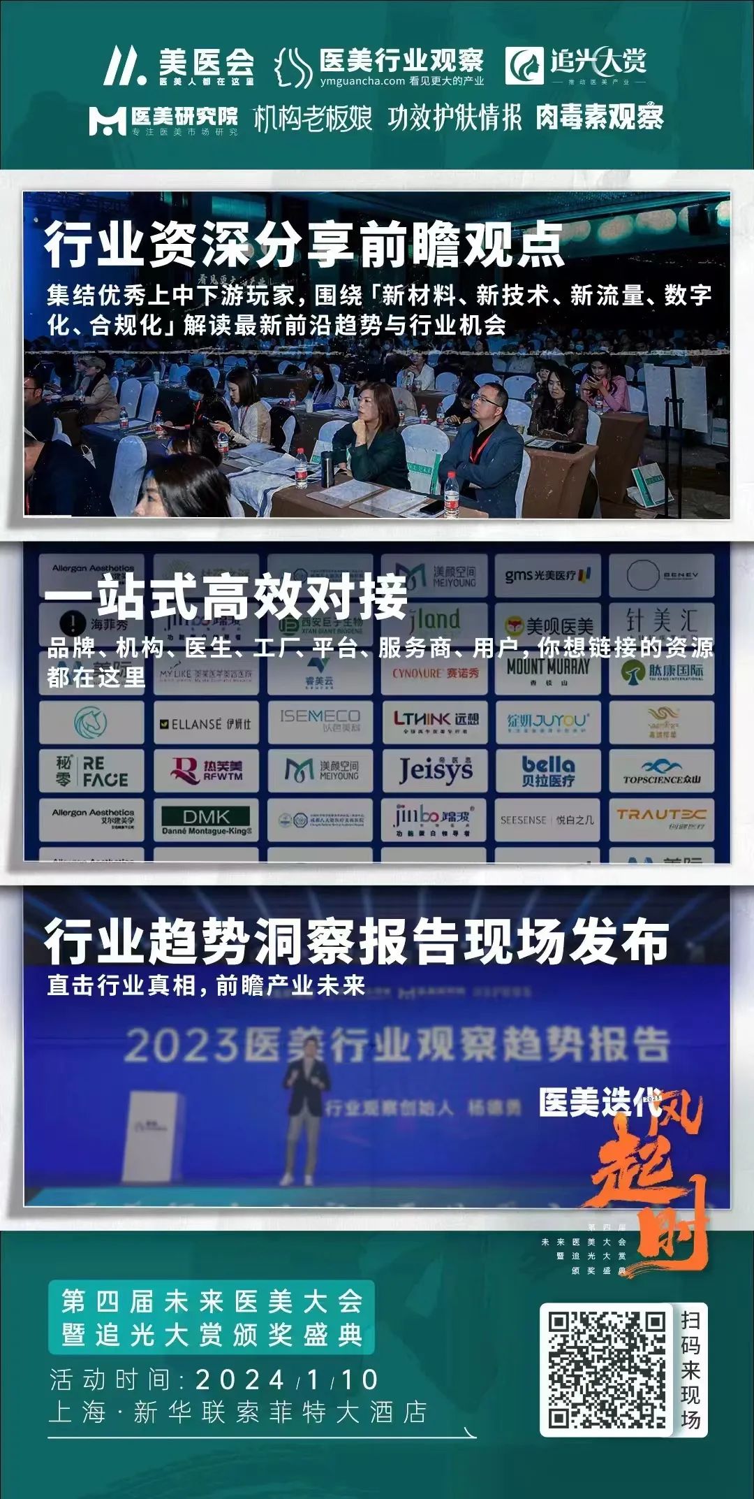 如今2023年即将过去,2024年,医美行业观察「未来医美大会」将持续前进,带领全国、全域、全产业链医美人冲破迷雾,持续成长。