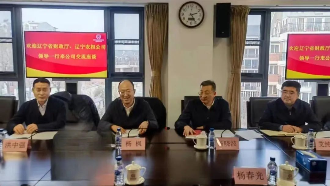 1月30日,辽宁省财政厅副厅长杨枫、辽宁农担董事长杨晓波、总经理洪中强、总会计师艾纯民一行到访国家农担公司。国家农担公司董事长李若云、总经理王国航、副总经理杨春光会见来访一行。双方围绕辽宁农担公司2023年主要工作成效及下一步工作计划开展座谈交流。