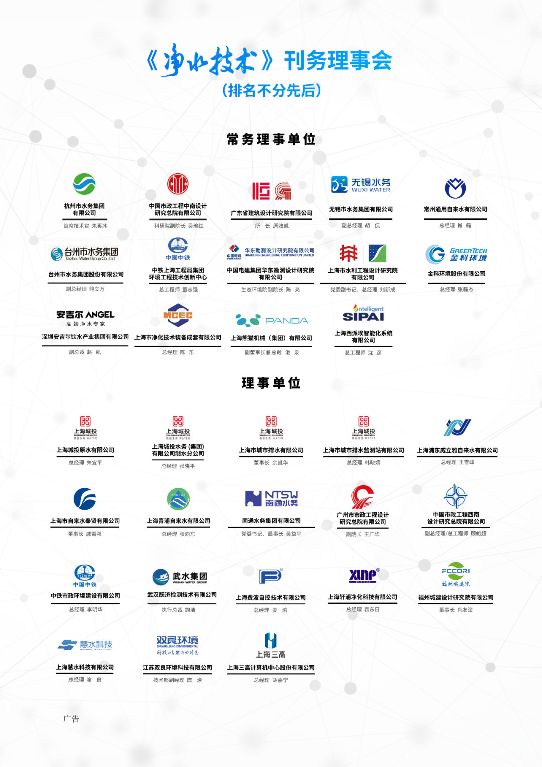 《净水技术》刊务理事会欢迎广大水务企业加盟合作