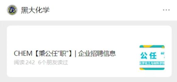 寒假期间,学院将通过黑大化学公众号定期推送化学相关企业招聘信息,同时通过微信群等平台及时为毕业生同学提供校内外平台就业信息,确保岗位信息不打烊。