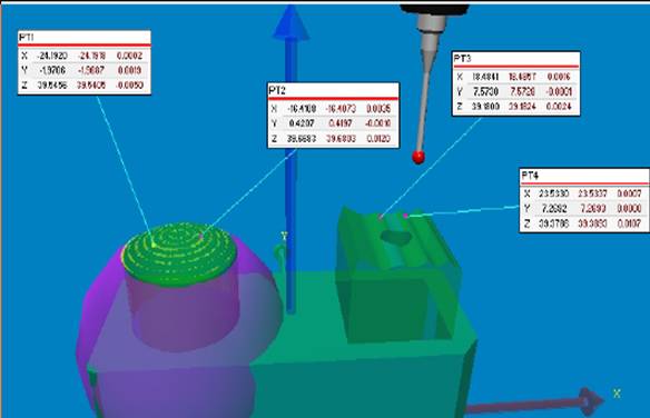 因卡尺使用的频率高,保养工作需要做到最好,每天使用完后需擦拭干净后放入盒内,使用前需用量块检验卡尺的精度。千分尺使用前需先用干净的白纸将灰尘与脏污去除(用千分尺测量接触面与螺杆面卡住白纸然后自然拉出,重复2-3次即可),然后扭动旋钮,测量接触面与螺杆面快接触时,改用微调,当两面完全接触后调零,即可进行测量。千分尺测量五金件时,调动旋钮,快接触工件时,改用微调旋钮旋进,当听到咔、咔、咔三声响后停止,从显示屏或刻度上读出数据。测量塑胶产品时,测量接触面与螺杆轻轻接触到产品即可。千分尺测量轴类直径时,至少测量两个以上方向且分段测取最大值测量中的千分尺,两接触面应当随时保持清洁,减少测量误差。高度尺主要用来测量高度、深度、平面度、垂直度、同心度、同轴度、面振、齿振、深度、高度尺测量时,首先要检验测头、各连接部位有无松动现象。将零件放置平台上,用塞尺测量零件与平台之间的间隙(注意:测量时塞尺与平台保持无间隙压紧状态) 将零件放在平台上旋转一周,用塞尺测量零件与平台之间的间隙。将零件放置在平台上,选取相应的塞尺测量零件两侧或中部与平台之间的间隙。将被测零的直角度的一边放置于平台上,另一边让直角尺与之靠紧,用塞尺测量部品与直角尺之间最大的间隙。零件孔径较大,没有合适的针规时,可将两个塞规重叠,按360度方向测量将塞规固定在带磁性的V形块上,可防止松动,易于测量。二次元是一种高性能、高精密特性的非接触式的测量仪器。测量器具的感应元件与被测零件表面不直接接触,因而不存在机械作用的测量力;二次元通过投影的方式将所能捕捉到的图象通过数据线传输到电脑的数据采集卡中,之后由软件在电脑显示器上成像;可进行零件上各种几何元素(点、线、圆、弧、椭圆、矩形)、距离、角度、交点、形位公差(圆度、直线度、平行度、垂直度、倾斜度、位置度、同心度、对称度)的测量,还可进行外形轮廓2D描绘用CAD输出。不仅能观测到工件轮廓,而且,对于不透明的工件的表面形状也可以测量。常规几何元素测量:下图零件中的内圆是利角,只能用投影的方式进行测量。电极加工表面观测:二次元的镜头具有放大功能电极加工后粗糙度检验(放大100倍影像)。浇口的检测:模具加工中,经常会有一些浇口在隐在槽内,各种检测仪器都不法进行测量,这时,可用橡胶泥贴在胶口上,胶口的形状就会印在胶泥上,再用二次元测量胶泥印的大小得出浇口尺寸。注:因二次元测量时,无机械作用力,对于较薄、较软的产品尽量采用二次元进行测量。三次元的特点是高精度(可达到μm级);万能性(可代替多种长度测量仪器);可用于测量几何元素(除可测量二次元能测量的元素外,还可测量圆柱、圆锥),形位公差(除可测量二次元能测量的形位公差外,还包括圆柱度、平度度、线轮廓度、面轮廓度、同轴度)、复杂型面,只要三次元的测头能触及的地方,就可测出它的几何尺寸和相互位置,表面轮廓;并借助于计算机完成数据处理;以其高精度高柔性以及优异的数字能力,成为现代模具加工制造和质量保证的重要手段、有效工具。有些模具在修改中,没有3D图档,可测量各个元素的的座标值,不规则曲面的轮廓,然后用绘图软件导出并根据测量元素做成3D图形,能进行快速而无误的加工与修改(座标设定后,可取任意点测量座标值)。3D数模导入对比测量:加工完成的零件,为了确认与设计一致性或在装配fit模过程中发现配合异常,当一些曲面轮廓既非圆弧,又非抛物线,而是一些不规则的曲面时,无法进行几何元素测量时,可导入3D模型与零件对比测量,从而了解加工误差;因测量值是点对点的偏差值,能便于进行快速而有效的修正改善(下图所显示的数据为实测值与理论值的偏差)。常使用的硬度计有洛氏硬度计(台式)与里氏硬度计(便携式)常用的硬度单位为洛氏HRC、布氏HB、维氏HV。洛氏硬度试验方法是用一个顶角为120度的金刚石圆锥休或直径为1.59/3.18mm的钢球,在一定的载荷压入被测材料表面,由压痕深度求出材料硬度。根据材料硬度不同,可分为三种不同的标度来表示HRA、HRB、HRC。HRA 是采用60Kg载荷和钻石锥压入器求的硬度,用于硬度极高的材料。例如:硬质合金。HRB 是采用100Kg载荷和直径1.58mm淬硬的钢球求得的硬度,用于硬度较低的材料。例如:退火钢、铸铁等 、合金铜。HRC 是采用150Kg载荷和钻石锥压入器求得的硬度,用于硬度很高的材料。例如:淬火钢、回火钢、调质钢和部分不锈钢。适用于显微镜分析。以120kg以内的载荷和顶角为136°的金刚石方形锥压入器压入材料表面,用测量压痕对角线长度,它适用于较大工件和较深表面层的硬度测定。里氏硬度是一种动态硬度试验法。硬度传感器的冲击体在与被测工件冲击过程中,距工件表面1mm时的反弹速度与冲击速度的比值乘以1000,定义为里氏硬度值 。优点:里氏硬度理论制造的里氏硬度仪改变了传统的硬度测试方法。由于硬度传感器小如一只笔,可以手握传感器在生产现场直接对工件进行各种方向的硬度检测,因此是其它台式硬度仪所难以胜任的。