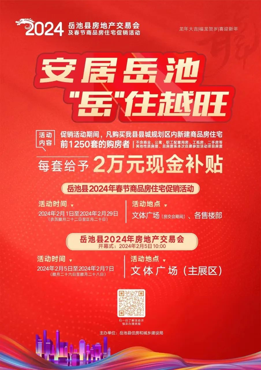 (二)岳池县2024年房地产交易会时间:2024年2月5日至2月7日(腊月二十六日至腊月二十八日)