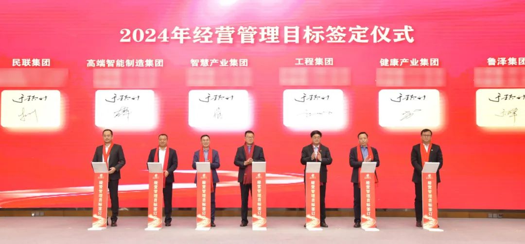 新的任命,新的征程,集团党委书记、董事长于瑞升分别与各产业集团签订了2024年经营管理目标责任书,全体参会人员一起见证了这一重要时刻。这份责任书,明确了集团新一年的新目标、新责任、新使命,更是对每一位员工工作方向的指引和鞭策。
