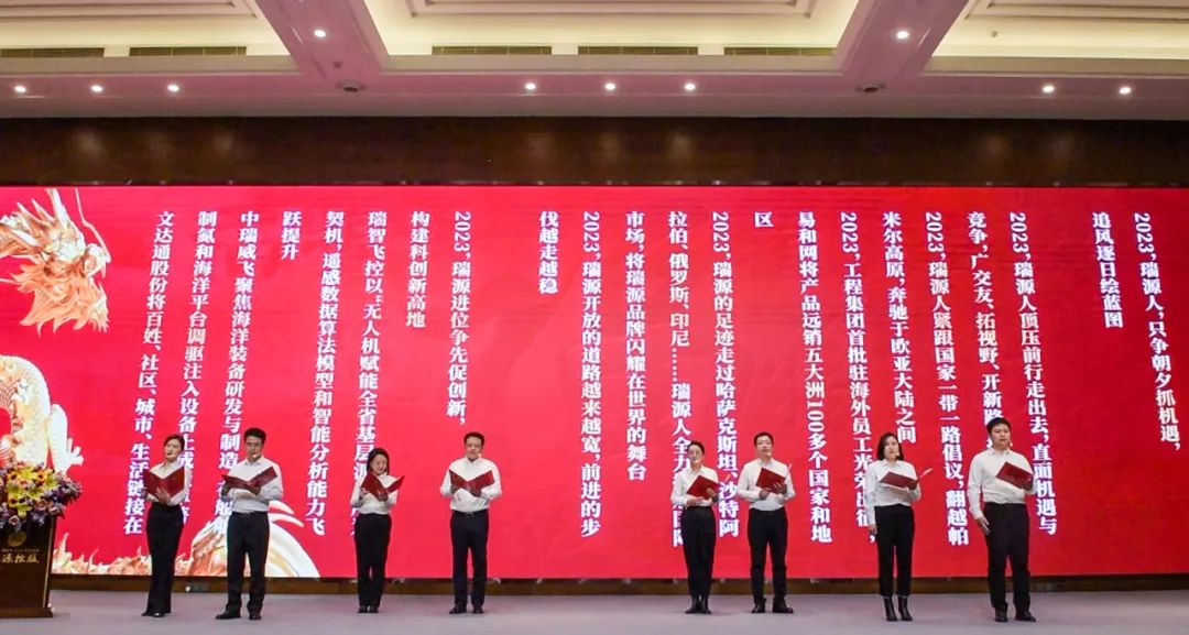 最后,董事长对全体瑞源人提出了殷切希望和新年祝福:坚定目标,持续推进五年规划;充分预案,全面落地工作任务;直面问题,彻底解决发展隐患,乘势而上创伟业,接续奋斗谱新篇;祝愿全体瑞源人如龙般翱翔于广阔天际,如豹般迅猛应对各种挑战,龙运亨通、幸福安康,祝福伟大的祖国繁荣昌盛,越来越好!
