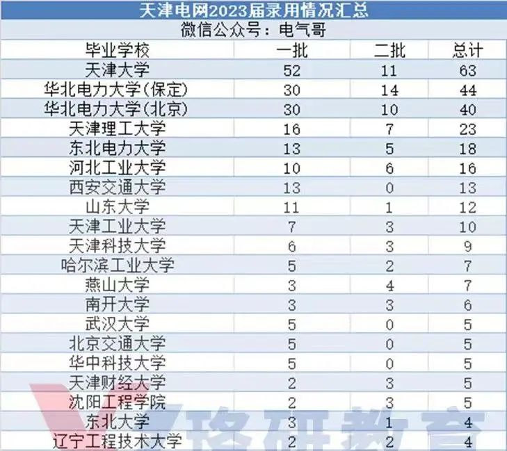 天津大学在23年天津电网招聘中人数排名第一,在电网招聘中常年都是热门学校。天津大学在天津电网中具有非常高的认可度,在2023年电网招聘中,一共有63名天津大学毕业生进入天津电网。当然,在其他地区电网也不缺乏天津大学毕业生的身影,天津大学毕业生在很多地区还是有着较强的竞争力。