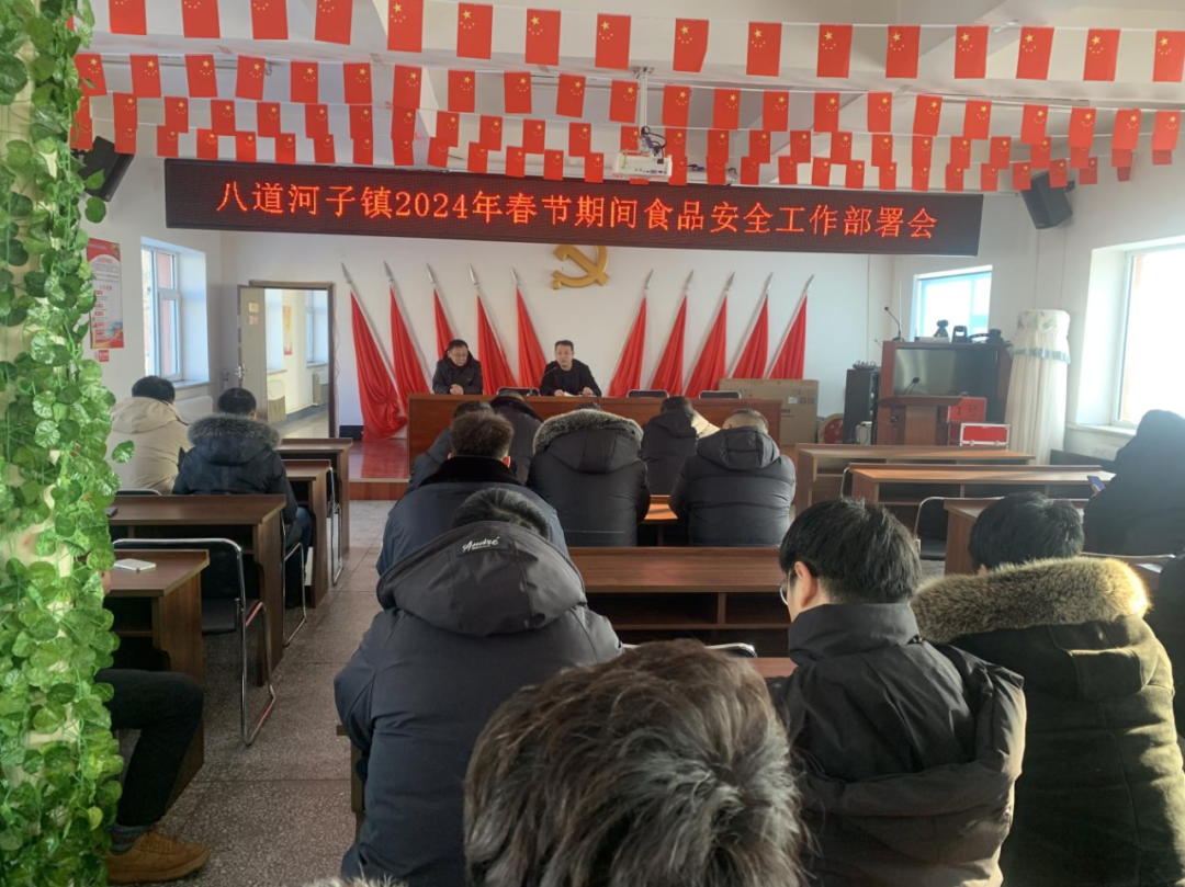 为做好春节期间食品安全各项工作,1月29日,八道河子镇召开2024年春节期间食品安全工作部署会议,会议由党委副书记周威主持,各村食品安全协管员、校园食品安全负责人及相关部门参会。