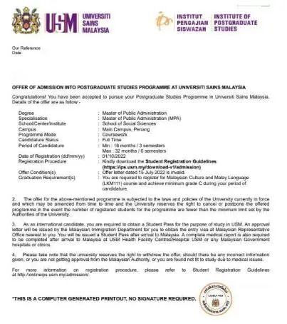 马来西亚理科大学Universiti Sains Malaysia(USM)委托国内高校合作进行硕士研究生的培养。项目采取“国内+国外”双环境全日制学习,第一阶段在国内高校学习,第二阶段在马来西亚学习,所获硕士学位可在中国留学服务中心进行认证。
