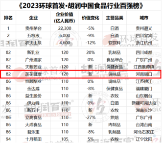 食品百强 | 莲花健康荣登《2023胡润中国食品行业百强榜》
