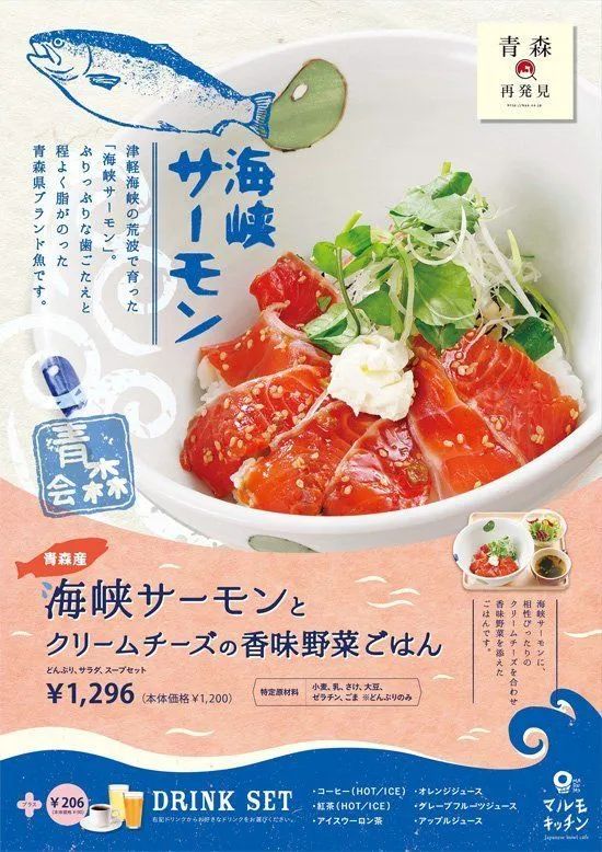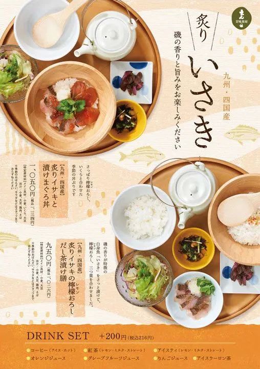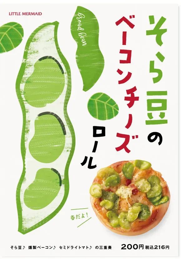 很多日本的海报都喜欢使用扁平插画素材,扁平、简单,甚至是有点随意的插画,能与食物图片形成鲜明的对比,给画面增加一种淳朴、健康的感觉。