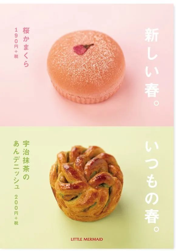 很多日本食品海报喜欢使用俯拍的食物图片,通过这种角度能够更全面的展示食物或者是餐具的特色,使图片的轮廓更简单,多张食物图片组合在一起时还能形成重复的效果,具有较强的统一性和节奏感。