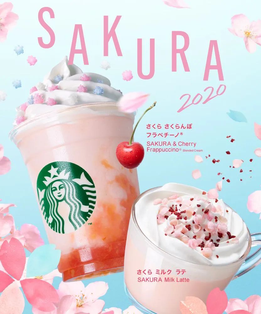 日本最出名的花是樱花,所以很多日式食品海报通常会用樱花来作装饰,粉色或白色飘零的樱花,能丰富画面、让画面更具动感。