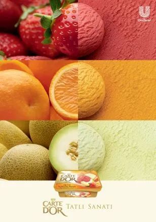 作为一张食品海报,能否激起消费者的食欲是最关键的,所以优秀的食品海报,其食物图片肯定是很有食欲的。食欲很强的图片在拍摄时要使用一些技巧,比如通过特写镜头拍出食物外表或内部的质感、拍食物流汁或流出果酱的状态。另外,色彩通常要以暖色为主,要鲜艳、干净,而且图片一定要高清。