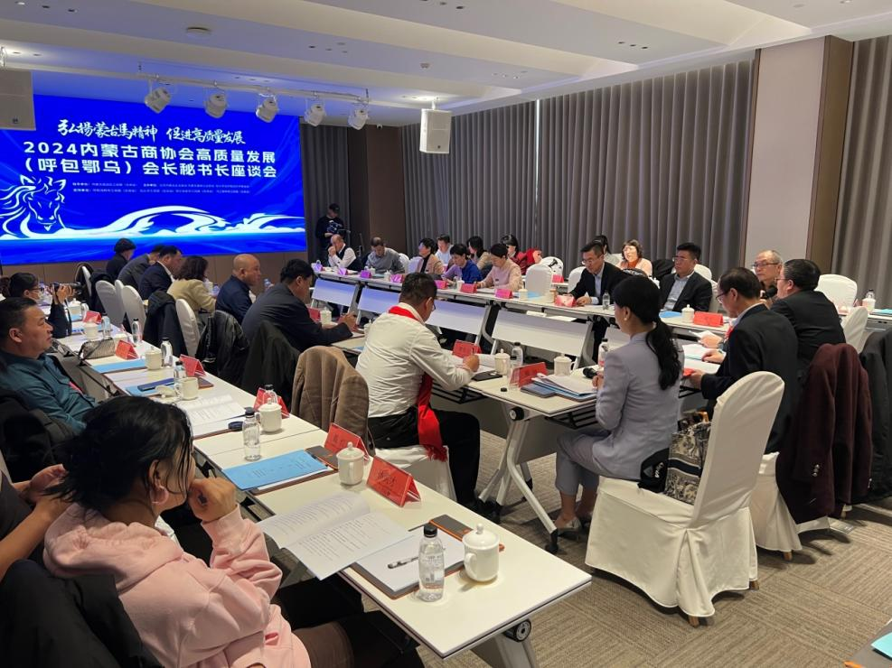 1月27日,2024内蒙古商协会高质量发展(呼包鄂乌)会长秘书长座谈会在呼和浩特召开。内蒙古自治区工商联党组成员、副主席白春艳出席会议并总结讲话,来自呼和浩特市、包头市、鄂尔多斯市、乌兰察布市和北京等地的工商联负责人和40多家商会、行业协会会长秘书长参会,内蒙古四川商会党支部专职副书记岳宋华代表内蒙古四川商会参加座谈会。