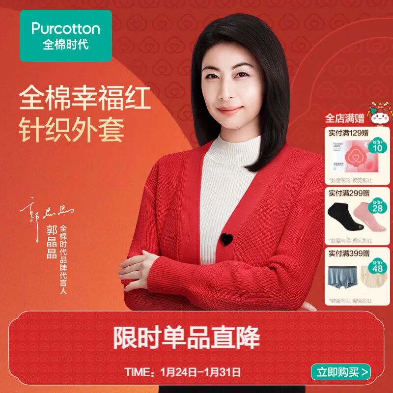 这款针织外套是全棉时代(PurCotton)的明星产品,也是郭晶晶的同款,由全棉时代创新研发的风柔棉面料制成,100%棉,保暖的同时更加蓬松轻柔,穿起来零压无束缚。V领开衫设计,方便穿脱,搭配各种内衣都很好看。颜色有幸福红和棉白色两种,尺码从S到XXL,适合不同身材的女士。这款针织外套是新年限定款,幸福红色寓意喜庆吉祥,是送给自己或亲友的最佳礼物,也是新年穿搭的亮点。