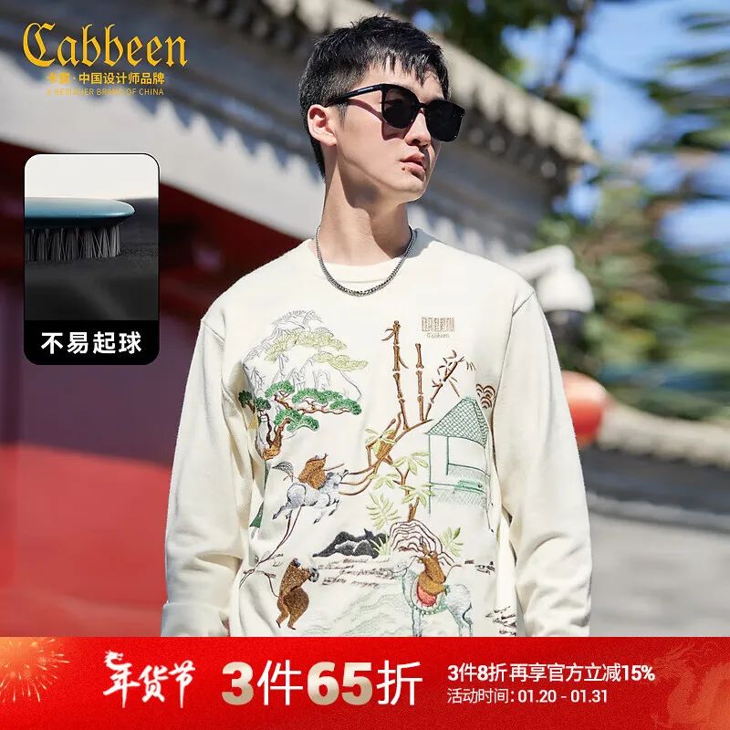 这是一款卡宾品牌的针织衫,它的特点是国风万针绣,刺绣了趣味的古人图案,富有文化气息和创意。它的材质是100%的其他材质,不知道是什么,但应该很高级。它的版型是宽松型,领型是圆领,颜色是米白色,非常显气质。这款针织衫可以搭配黑色或深色的裤子,给您带来优雅和高贵的感觉。无论您是去参加派对,还是去旅游,这款针织衫都能让您成为众人的焦点。
