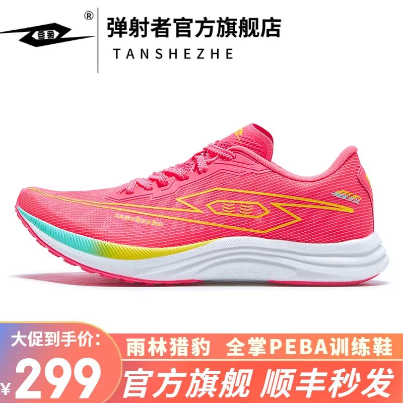 这是一款专业的竞速跑步鞋,适合中短距离的跑者。它的特点是采用了全掌铲型助推PEBA板,可以提供强劲的回弹力和推进力,让你跑得更快更远。它的鞋面也是用TPE网纱和TPU无缝拼接,保证了透气性和包裹性,让你的脚感觉舒适和稳定。它的外底是用橡胶和碳纤维混合,增加了耐磨性和抓地性,适合各种路面。这款鞋的颜色是猎豹粉,非常时尚和个性,让你在跑道上成为焦点。如果你想提高你的跑步速度和技巧,这款鞋是你的不二之选。