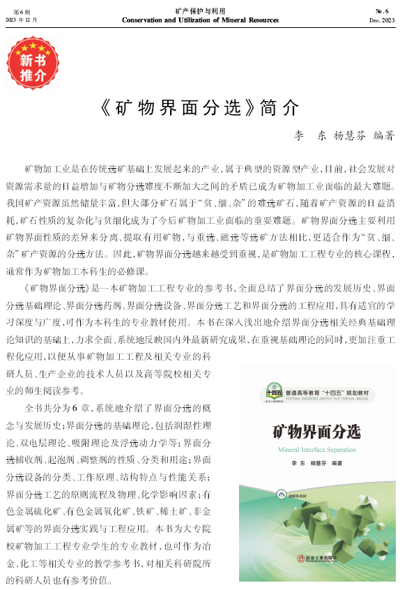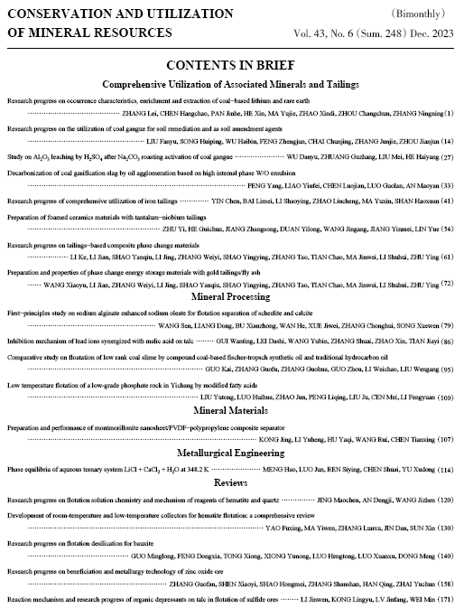 第1期:微细粒矿物分离过程强化专题(2月份刊发,收稿截至1月20号)