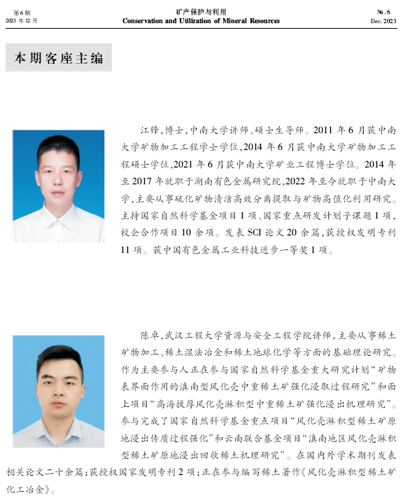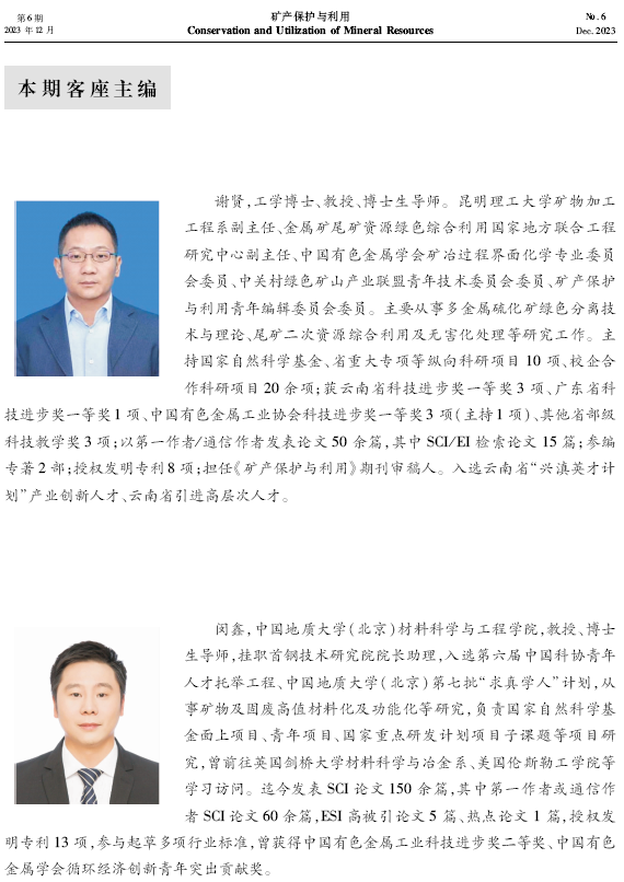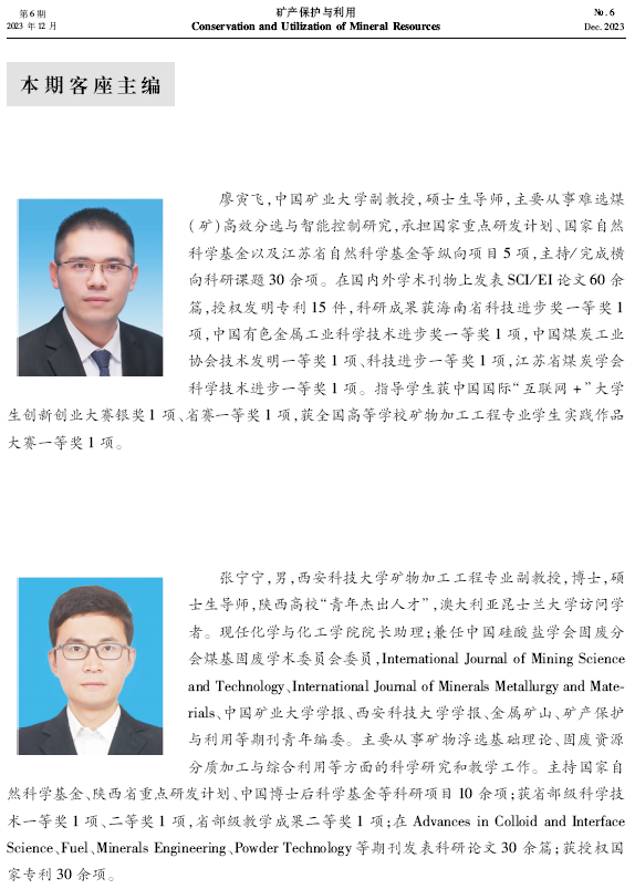 客座主编:矿冶科技集团郭利杰教授级高工、西安科技大学刘浪教授、北京科技大学王勇副教授、中南大学陈秋松特聘副教授。