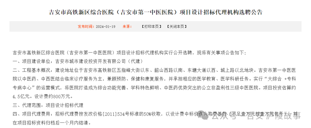 近日,吉安市高铁新区综合医院(吉安市第一中医医院)项目设计招标代理机构实行公开选聘!