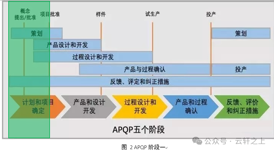各行各业的产品研发都是一样的。这个阶段就如下图所示。那我们接下来看看APQP的第一个阶段——计划和确定目标需要做哪些工作,我们还是按照质量体系的结构从输入到输出来讨论。在说明之前,还需要在强调一下,产品研发项目是跨部门的团队活动,而非某个部门独立的活动。
