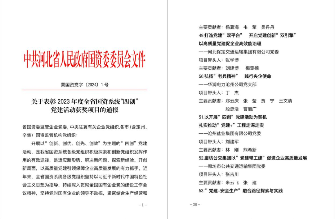 华润电力沧州公司、沧州盐业集团有限公司喜获河北省国资系统“四创”党建活动评比优秀奖