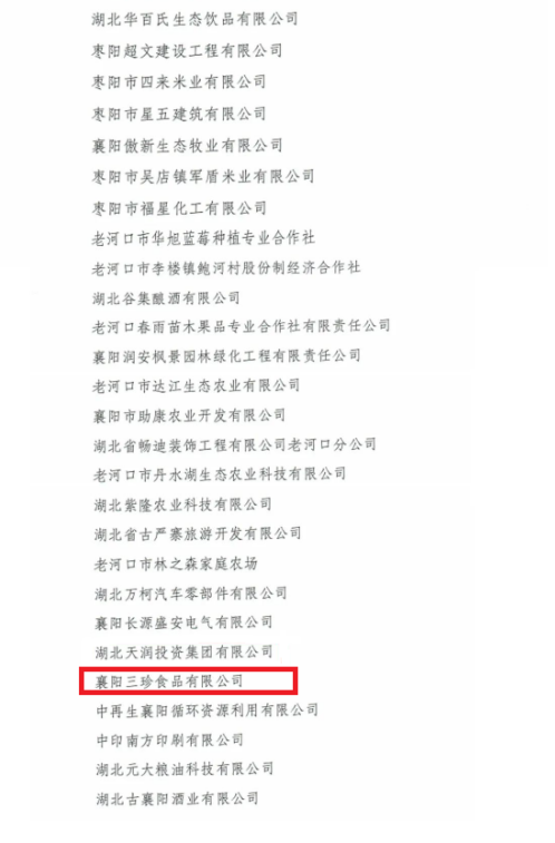 三珍食品获襄阳市工商联“万企兴万村”行动表现突出企业