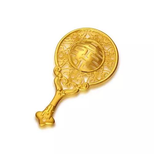 取材于传统婚礼仪式中用于新郎掀开新娘红盖头的如意秤,现作为父母送给出嫁女儿的婚庆九宝之一,希望女 儿今后的生活称心如意,夫妻如意同心。