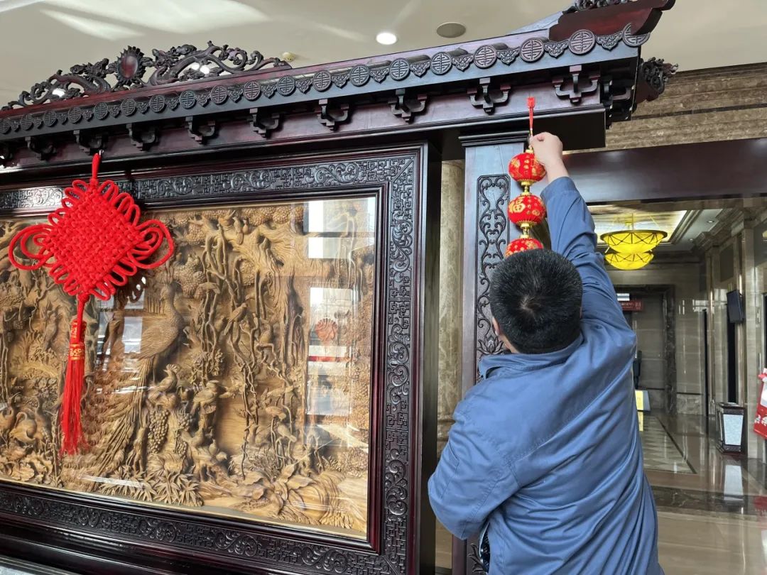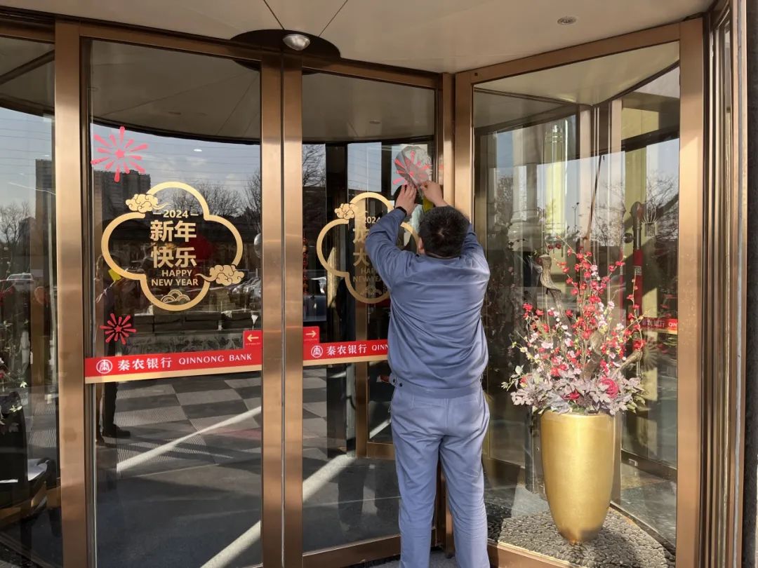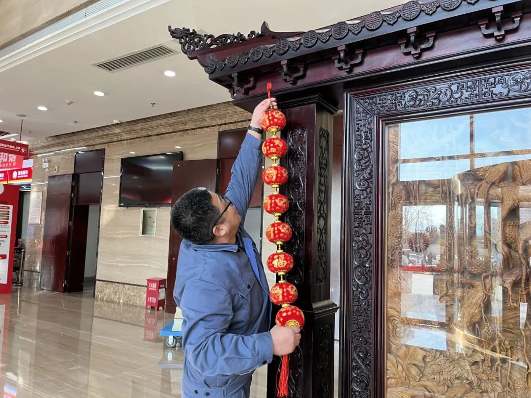 11. 购买新年装饰品,并联合工程部布置大堂及转门。