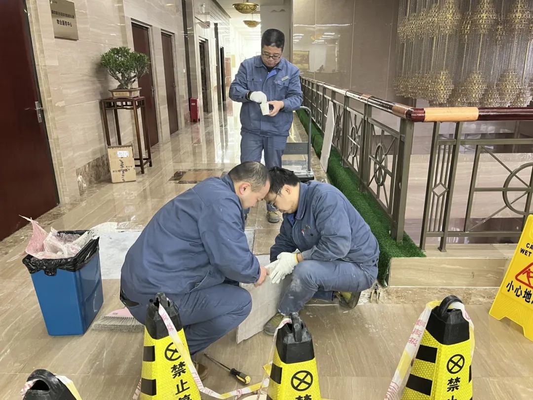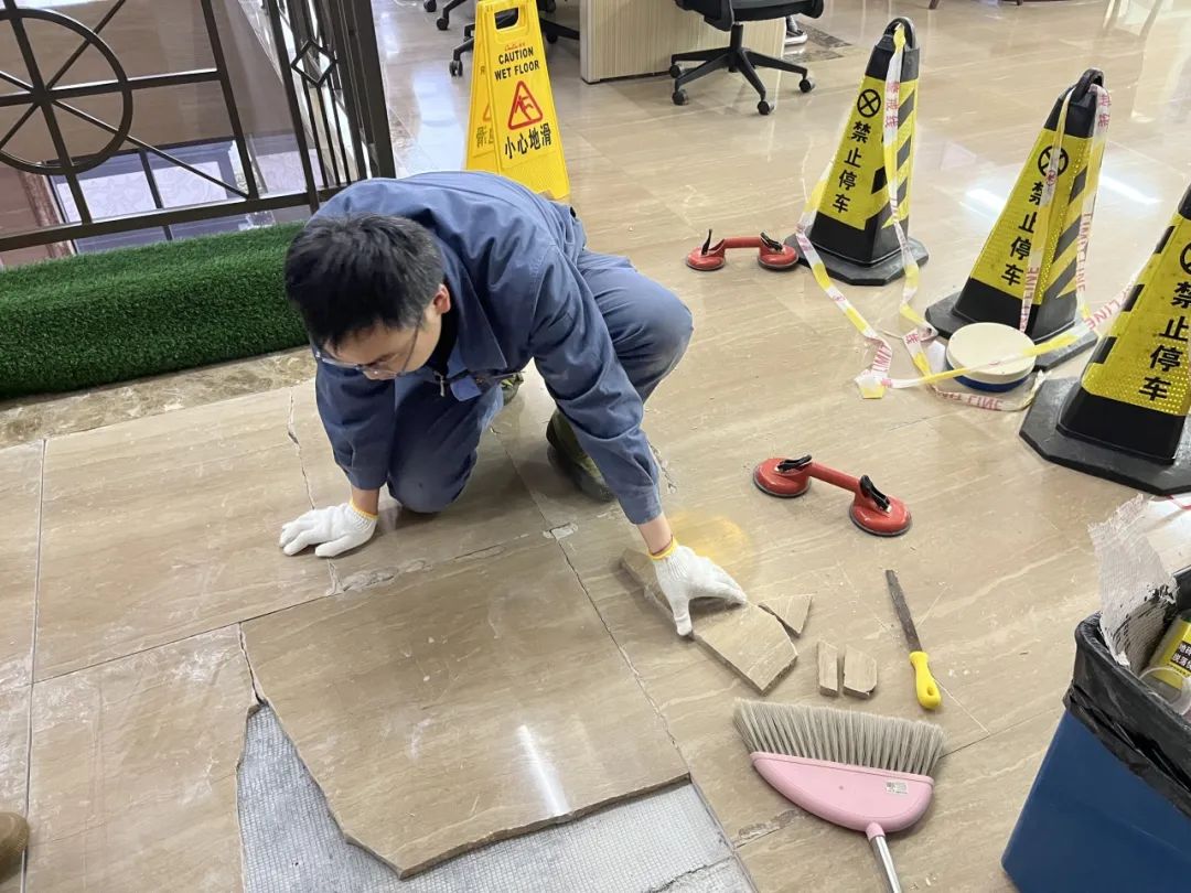9. 处理2F大厅地面石材鼓起。