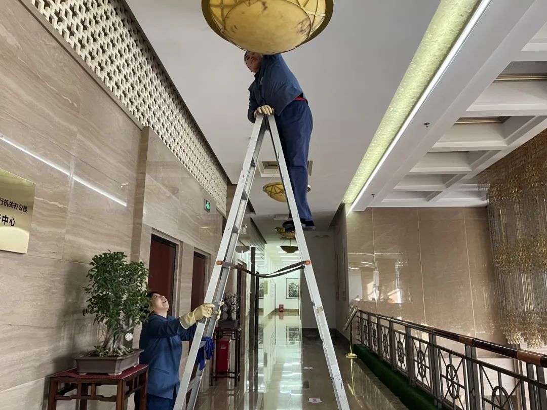 13. 擦1F、2F、3F客梯间吊灯;擦大厅异形灯;擦大厦周围高处风口。