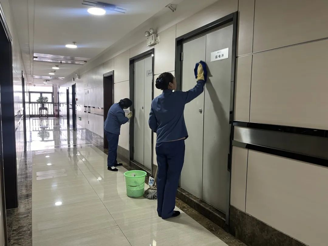 11. 清洗各楼层防火门、管道井及强、弱电井门里外。
