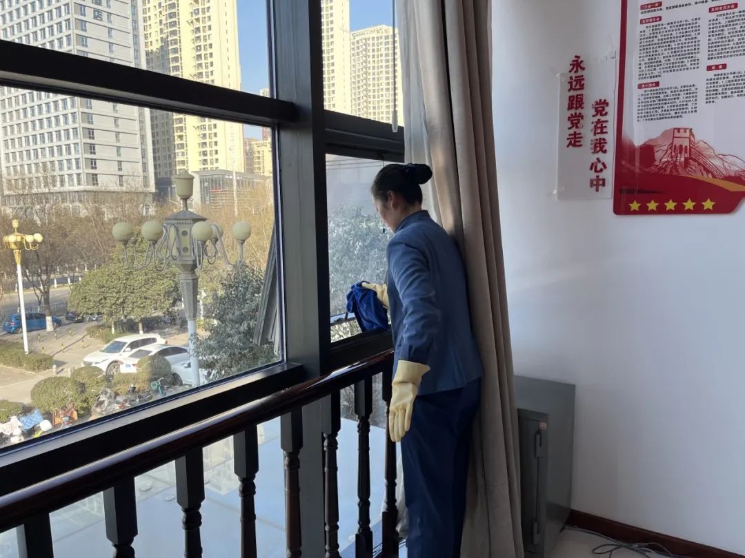 15. 清洗各楼层公共区域百叶窗帘及纱窗。