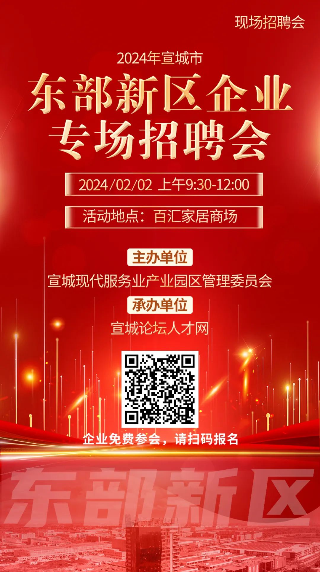 2024年宣城市东部新区企业专场招聘会将在2月2日上午举办
