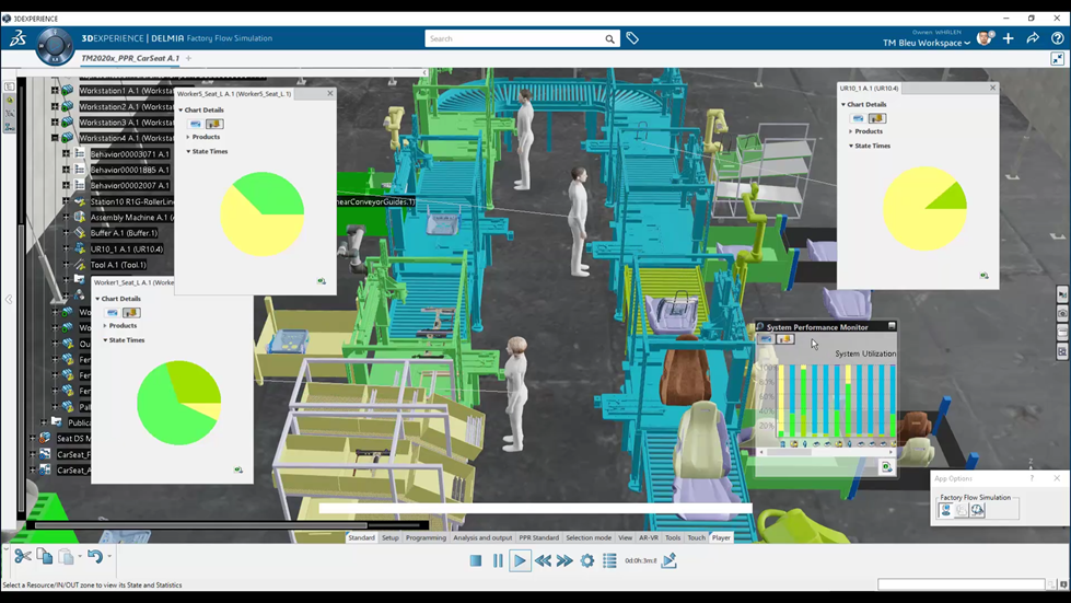 负载平衡:可以检查工位的利用率和分配的资源,通过在工位之间拖放操作来手动平衡操作以实现所需的节拍;