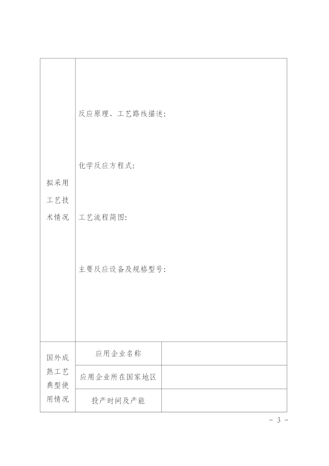 建设单位拟采用的化工工艺符合本办法第三条第4项情形的,应当提交“安徽省引进国外成熟化工工艺在国内首次使用情况说明”(见附件3),技术转让方或开发方提供的相关专利、标准、技术规范、技术交易合同及其它相关材料。