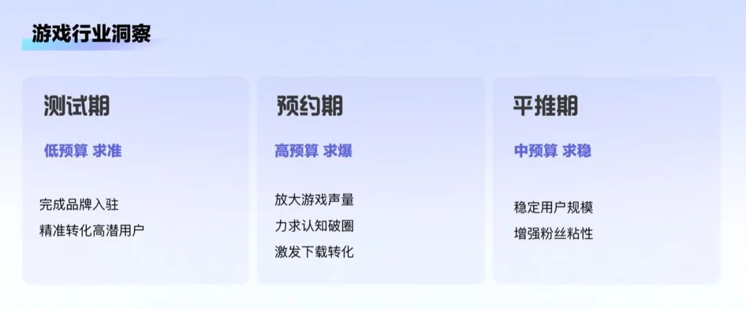 贴吧的商业化变现之路一直是坎坷的,传统的广告变现效果是短平快,但对百度贴吧这样的社区产品并非最优选择:过多广告会影响用户交流和创作,进而阻碍优质内容生产,损失的还是社区自身的流量和声誉。为了实现商业收入与用户体验的双赢,我们在贴吧探索非广告变现的尝试中,将目光聚焦在游戏行业。贴吧天然聚集了在游戏上有共同话题的吧友们,并且既往广告收入中,游戏也是占比最大的。因此,无论从用户层面还是从商业层面,游戏垂类都是我们探索非广告变现新模式的最佳实验田。挑战1:如何提升游戏客户与贴吧的合作意愿?我们做了大量针对游戏行业的案头研究,以了解当下客户在各平台做经营推广的趋势。我们发现在游戏生命周期不同阶段,客户有着不同的合作诉求。