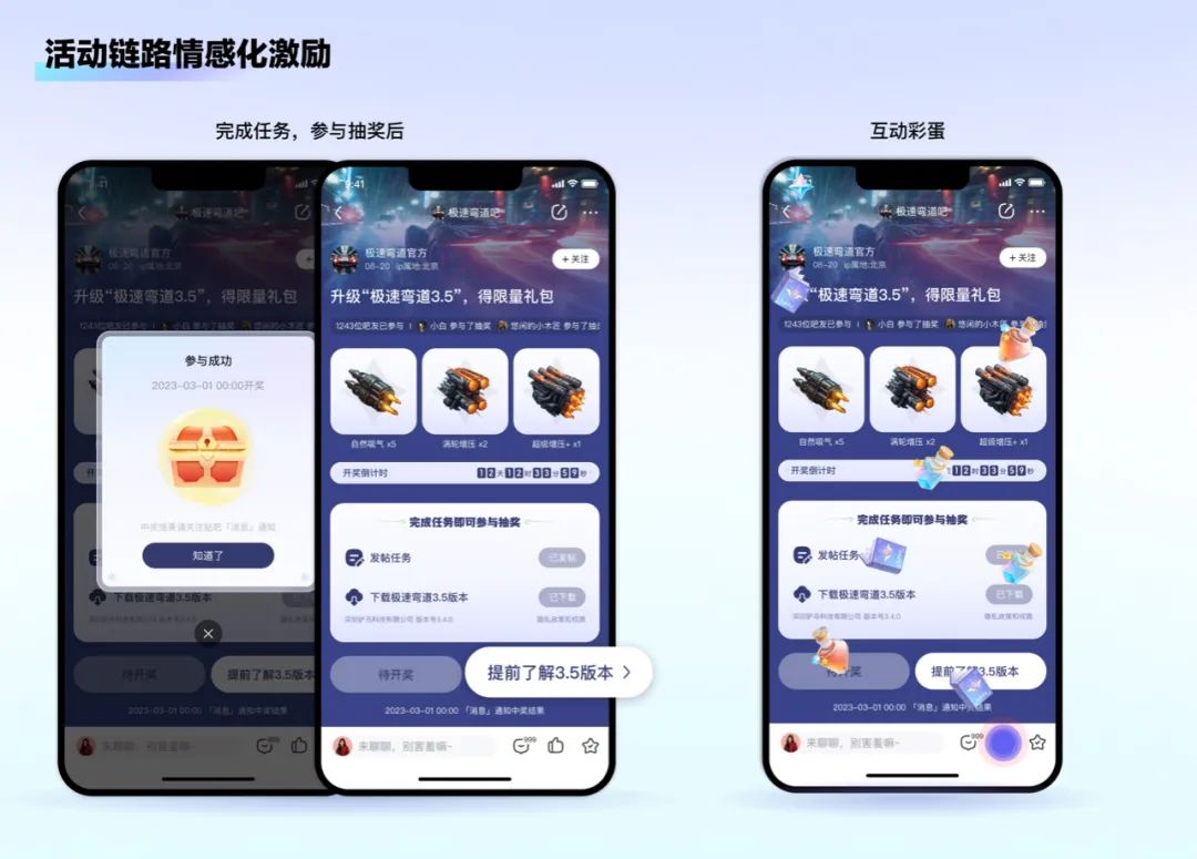 在最初设计理念的指引下,我们产出了针对游戏行业的全套商业经营设计整案。客户认可了我们对于游戏商业经营的设计理念,多家头部游戏客户与贴吧达成了长期的合作。同时,游戏推广类活动也在社区内收获了正向的用户反馈和显著的数据提升。设计的机会,往往蕴藏在服务主体间的各自目标中。如能在执行之前、分析先行,以更全面的视角思考,则能最好地避免设计落地动作的走形。更多精彩作品展示,请关注「百度MEUX」小红书账号869010907