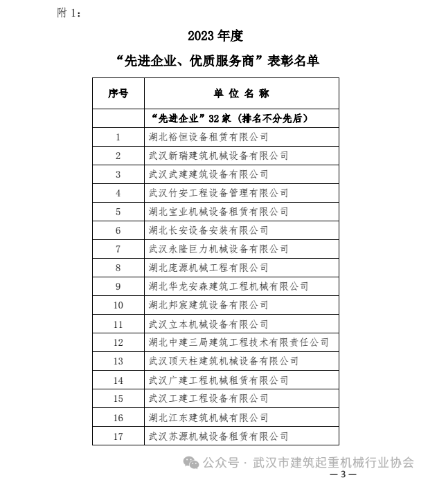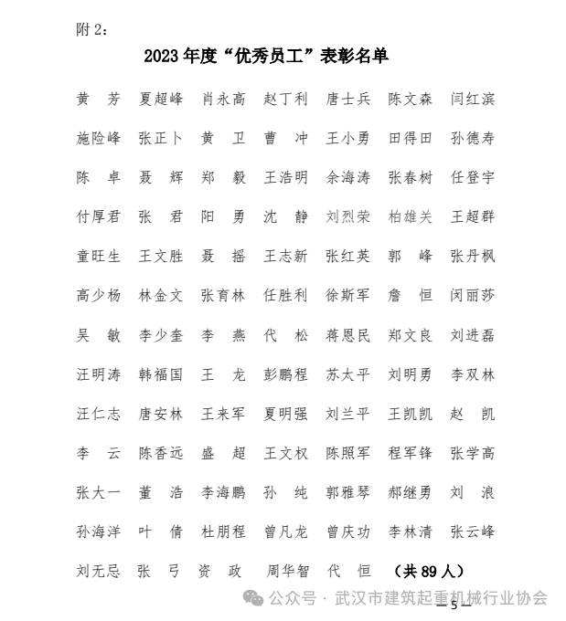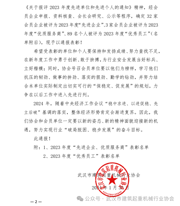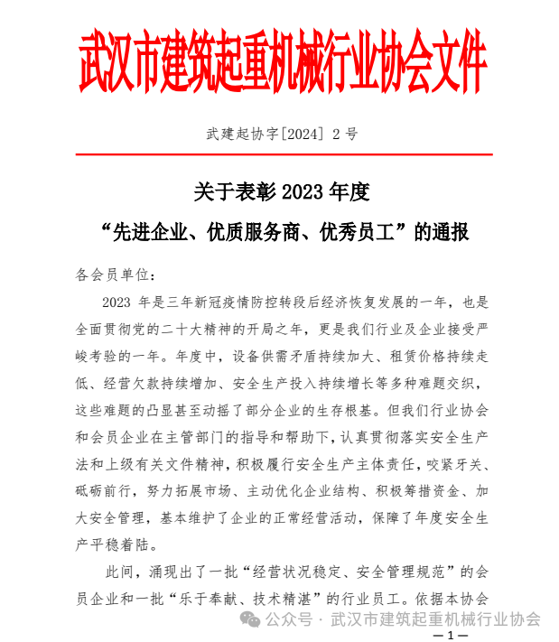 武汉市建筑起重机械行业协会关于表彰2023年度“先进企业、优质服务商、优秀员工”的通报