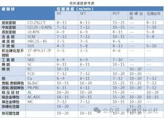 攻丝速度参考表