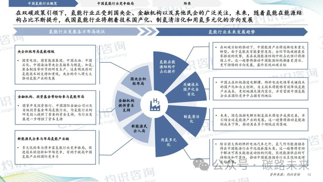 总的来说,2023中国氢能行业蓝皮书对中国氢能行业的发展进行了全面深入的分析,既总结了成绩和经验,也指出了问题和挑战。对于未来的发展,蓝皮书预测,中国氢能行业将继续保持快速增长的态势。随着技术的不断进步和市场的逐步扩大,氢能将在中国的能源结构转型中发挥越来越重要的作用。同时,中国政府对氢能行业的支持力度也将进一步加大,为行业发展提供更有力的政策保障。