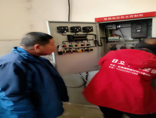 宜康物业公司工程部工作人员对竹园社区水泵房电器元件进行更换。