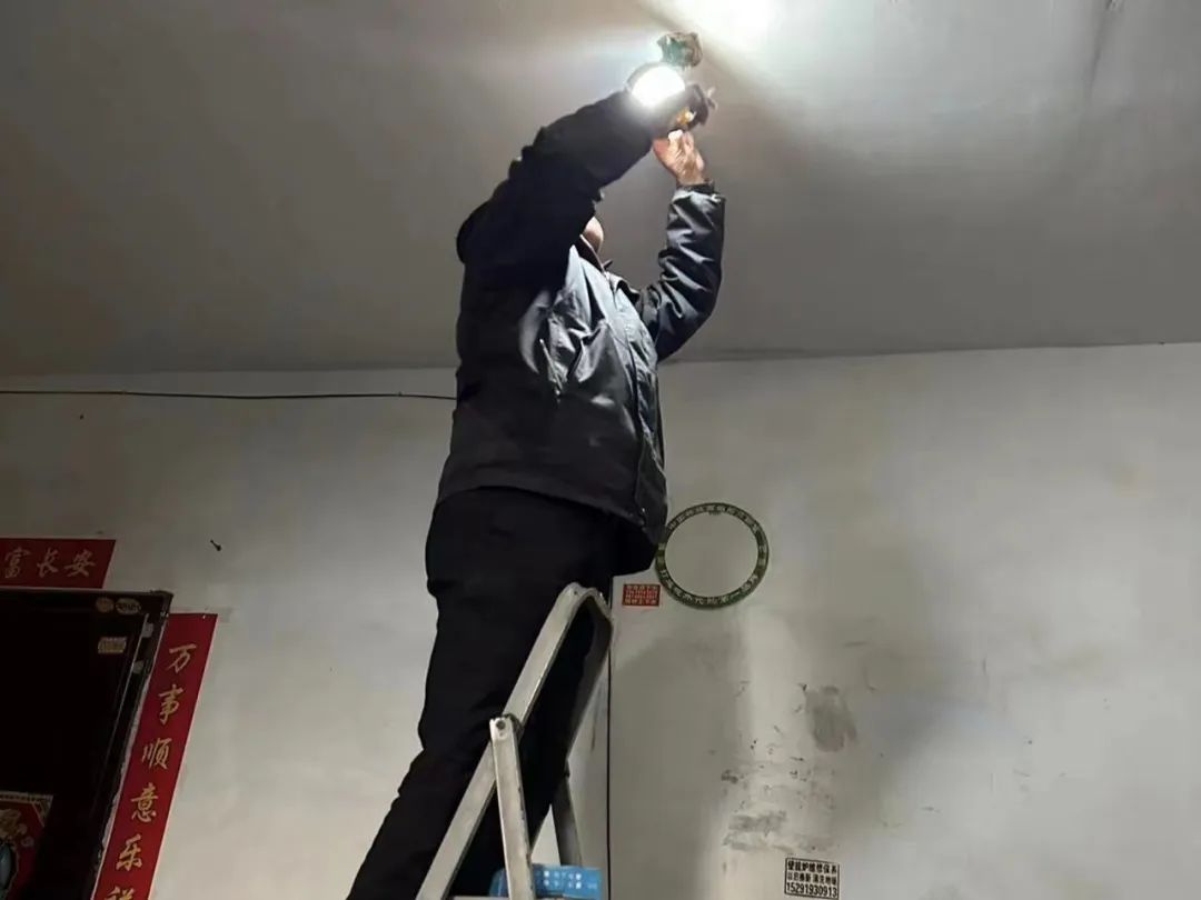 城市嘉园小区物业工作人员对楼道故障照明设施进行维修更换。