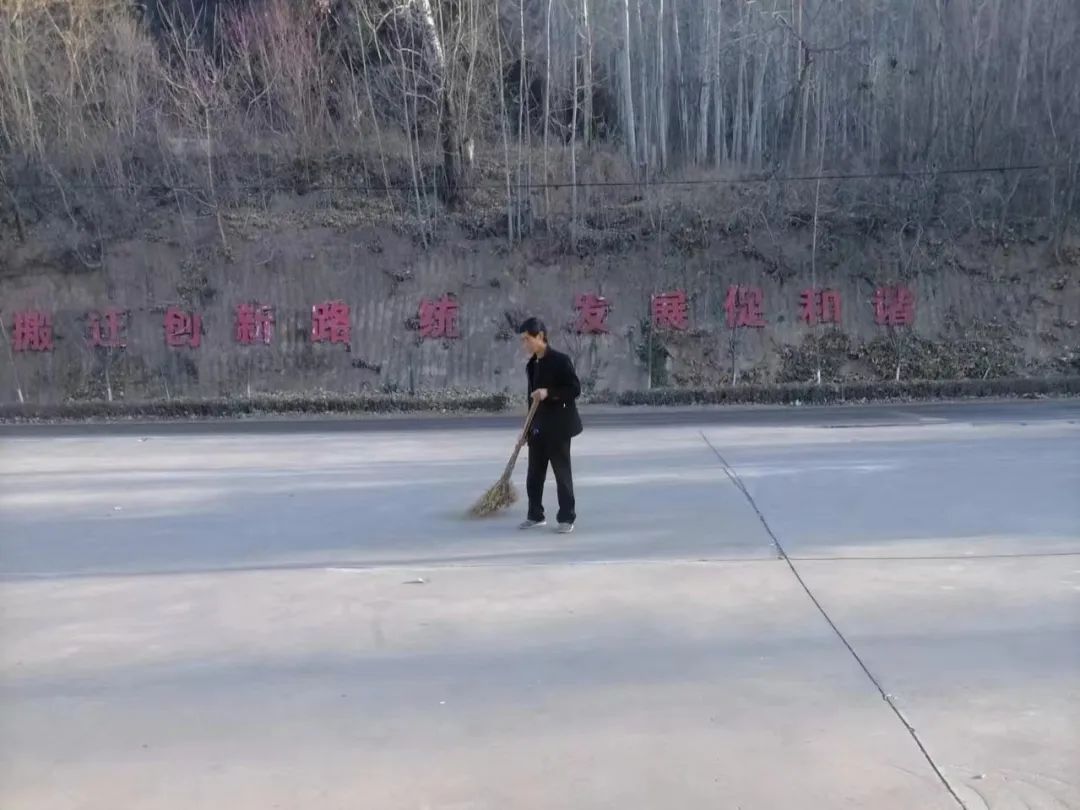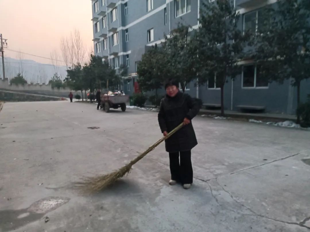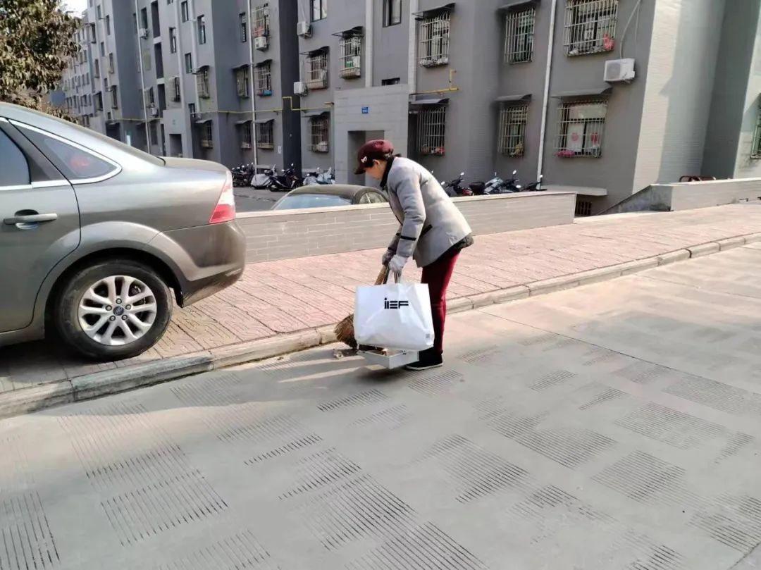 西川社区物业工作人员打扫社区公共区域的卫生,营造良好的社区环境。