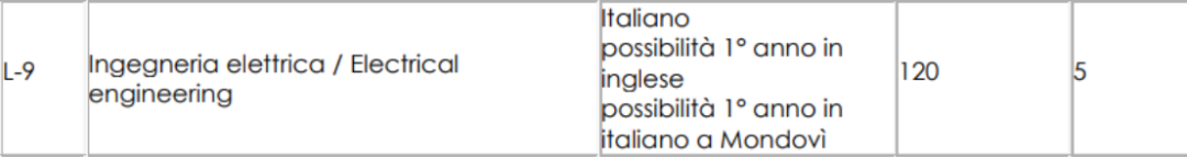 电气工程专业(意大利语授课,第一年可选英语,也可选意大利语在Mondovi)