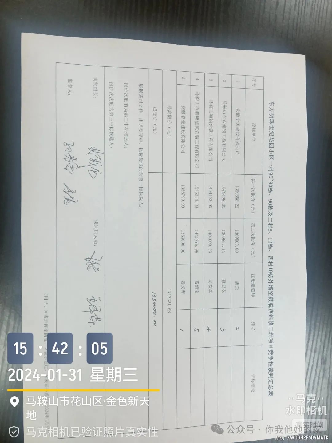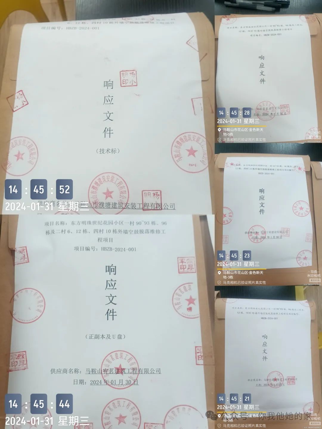 今天下午15:00,业委会委托康泰物业进行的东方明珠世纪花园小区一村90~93 栋、96栋及二村6、12 栋、四村10栋外墙空鼓脱落维修工程项目公开招标的开标会,在委托的第三方监理公司~安徽瀚博工程项目管理有限公司办公室进行了。
