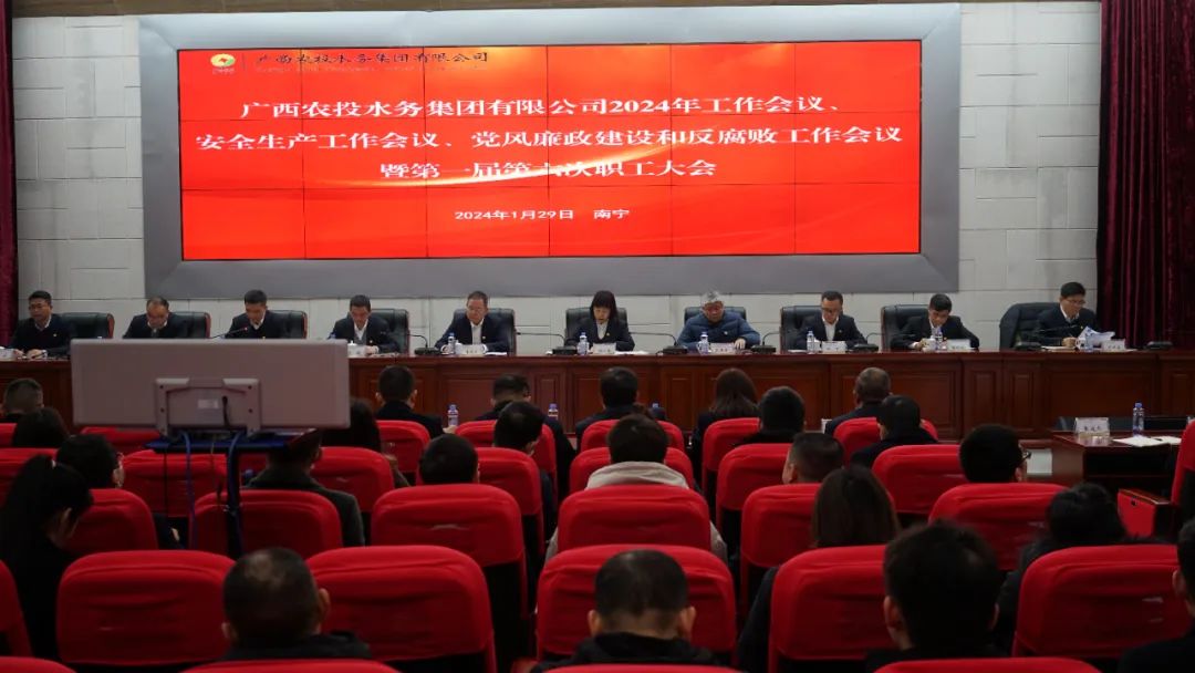1月29日,广农水务集团召开2024年工作会议、安全生产工作会议、党风廉政建设和反腐败工作会议暨第一届第六次职工大会。广农集团副总经理、总法律顾问、首席合规官韦德斌出席会议并讲话。