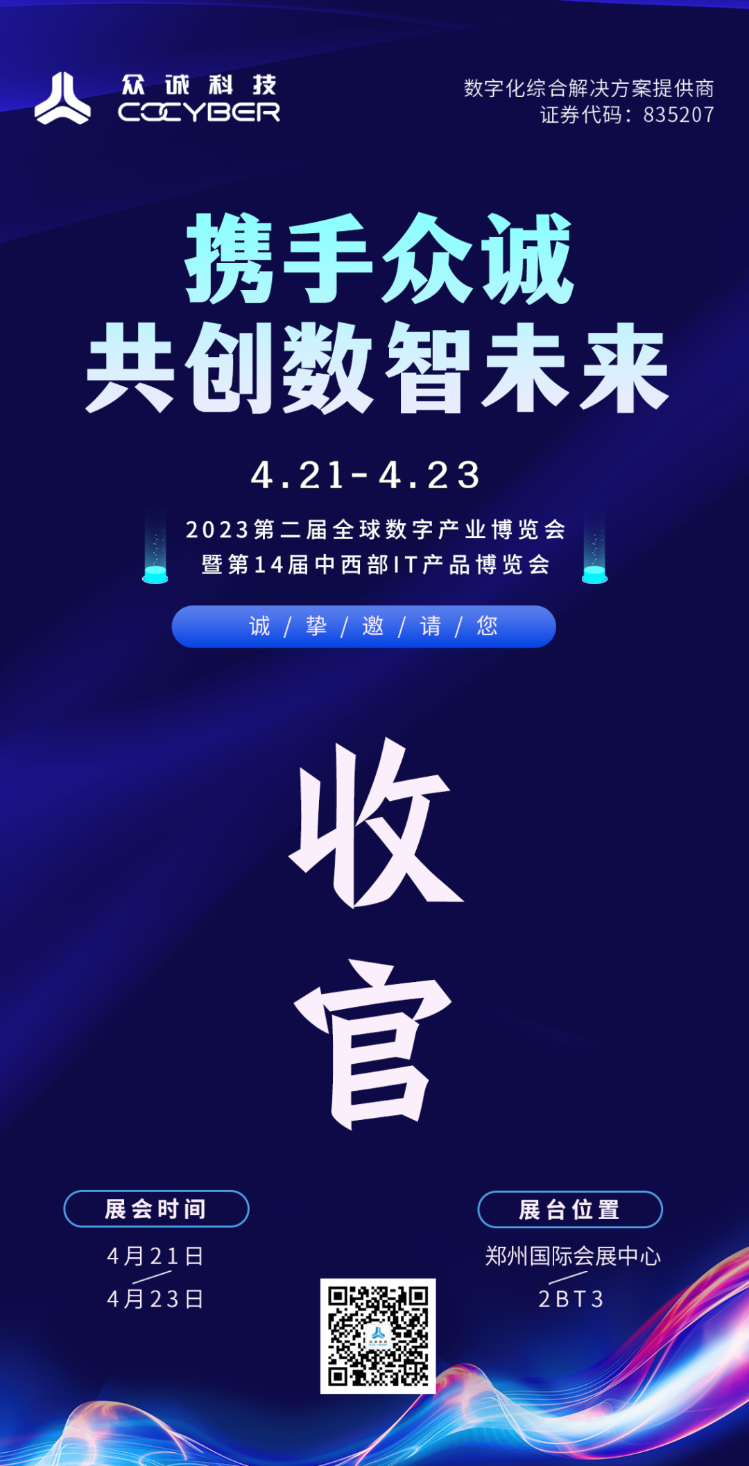 众诚科技是一家北交所上市企业(证券代码:835207),业务聚焦数字政府、行业数字化转型、元宇宙(孪生与虚仿)行业应用数字化综合解决方案,是工信部首批建议支持的国家专精特新重点“小巨人”企业;秉承“聚焦、专业、专注”的发展理念,历经多年发展与沉淀,坚持以“创新思维和数字技术,为客户创造价值”为使命,致力于为政务、企业、教育、交通、医疗等领域客户提供集咨询规划设计、系统集成、软件开发、云化转型、数据与安全、运维运营服务等多元化、定制化、专业化的全栈式数字化综合解决方案,加速客户数字化转型升级。