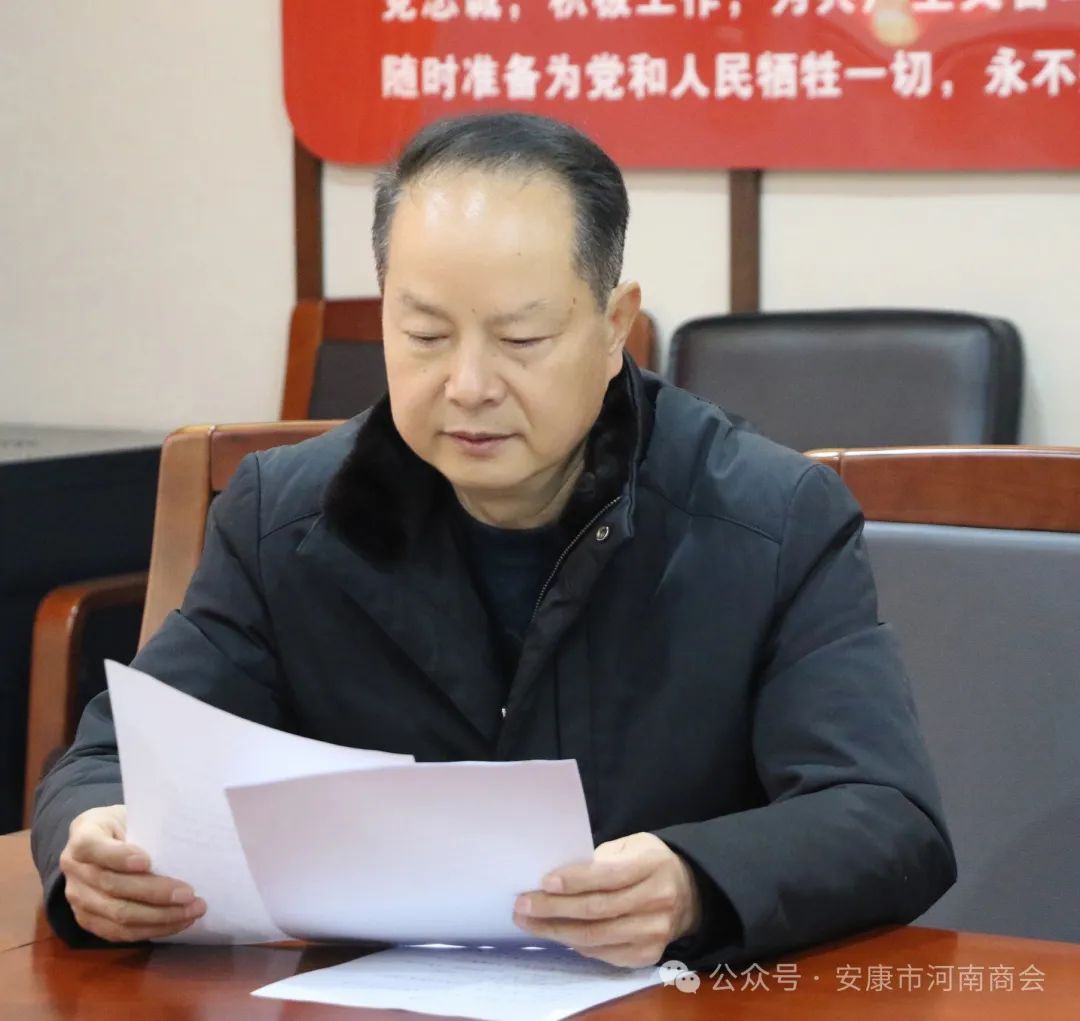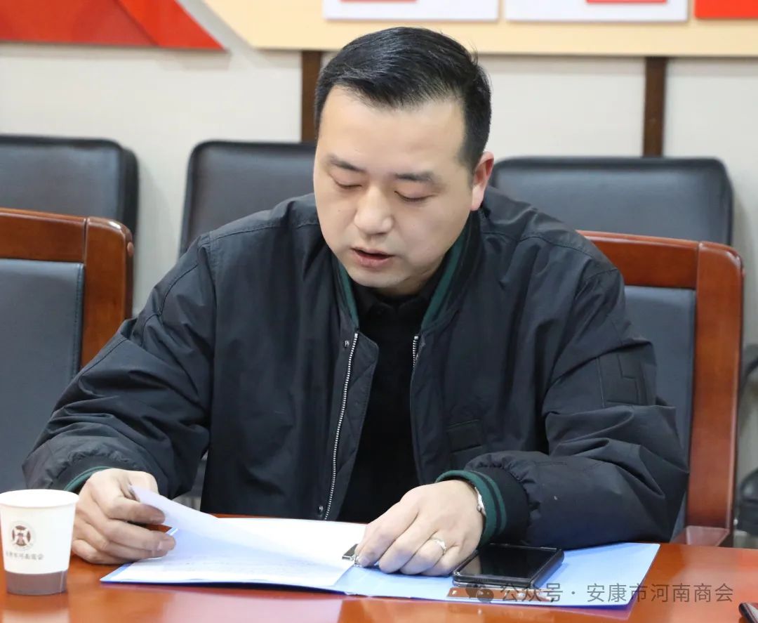 王秘书长代表商会秘书处宣读了《安康市河南商会2024年度工作计划》,主要内容:2024年我会将从以下几个方面进行发力:(一)创新商会服务方式,提升商会服务能力;(二)进一步发挥信息平台作用,及时传达政策信息;(三)发挥商会的桥梁纽带作用,助推市、区招商引资工作;(四)加强商会党支部建设;(五)继续抓好商会的自身建设;(六)做好商会换届的全面工作。