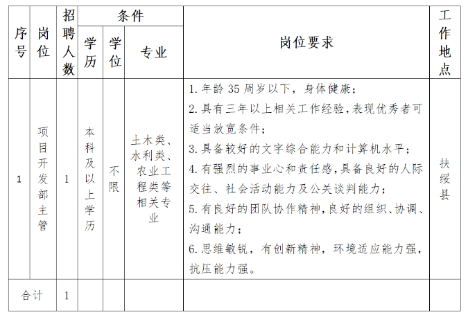 为优化润农公司人才队伍结构,现对外公开招聘1个岗位1个职位。